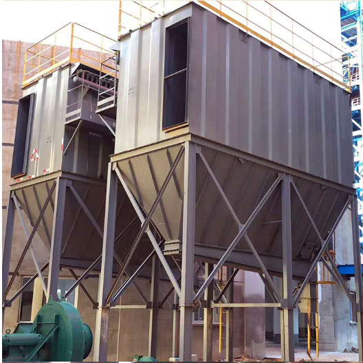 含尘气体由灰斗上部进入后,部分大颗粒粉尘由于惯性力的作用被分离出来落入灰斗。含尘气体进入箱体粉尘被阻留在滤袋的外表面,净化后的气体经滤袋口进入上箱体,由出风口排出。